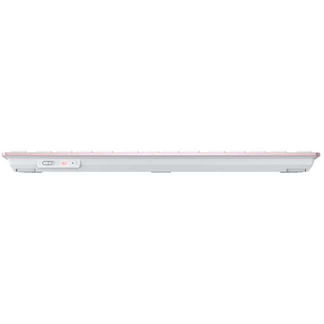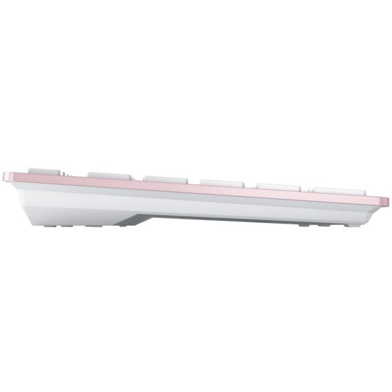 "CHERRY KW 7100 MINI BT. Keyboard style: Straight. Connectivity technology: Wireless, Device interface: Bluetooth, Keyboard key switch: Scissor key switch, Keyboard layout: QWERTY, Keyboard number of keys: 78, Recommended usage: Universal. Product colour: Pink"\n"The CHERRY KW 7100 MINI BT is a compact Bluetooth® wireless keyboard that is perfect for use on the go. Ideal for both personal and professional purposes: The multi-device keyboard can be connected to up to three different devices at the same time. The carry case provided makes the keyboard easy to store and transport, meaning it is always ready for use.
