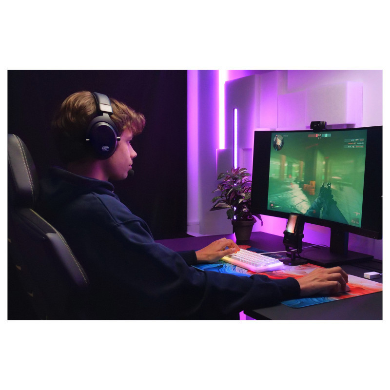 The H3 builds upon the esports-tuned soundscape of the H1 and H2, with audio precision crafted in collaboration with experienced pro gamers. The 53 mm drivers amplify critical ingame sounds, helping you stay one step ahead of the action.