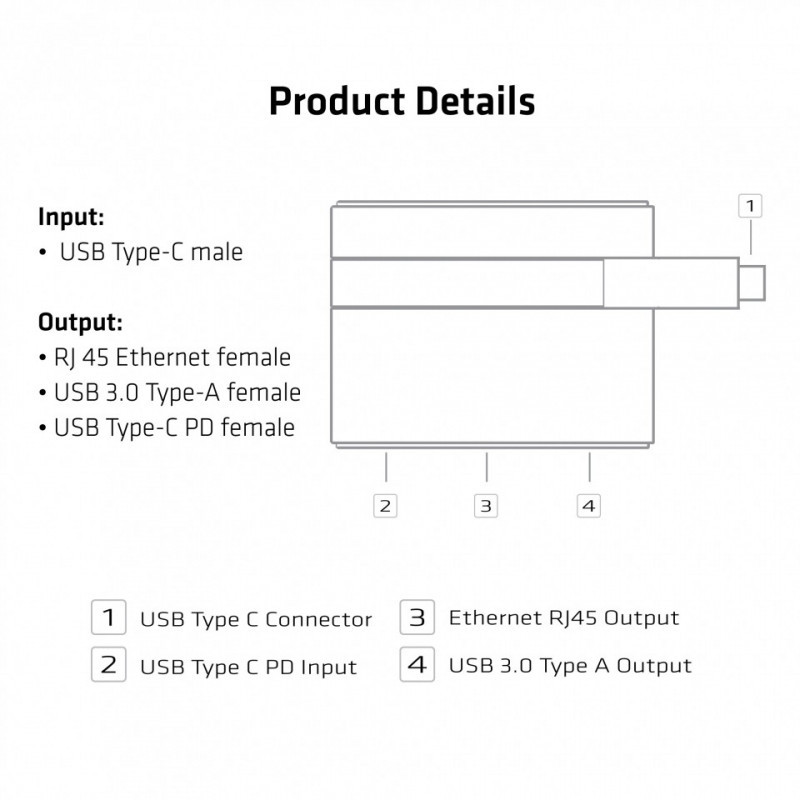 "CLUB3D USB Type-C to Ethernet + USB 3.0 + USB Type-C Charging Mini Dock. Connectivity technology: Wired, Host interface: USB 3.2 Gen 1 (3.1 Gen 1) Type-C. Ethernet LAN data rates: 10,100,1000 Mbit/s. Product colour: Black. Width: 78 mm, Depth: 60 mm, Height: 19 mm. Quantity per pack: 1 pc(s), Package width: 135 mm, Package depth: 45 mm"\n"The SenseVision USB Type-C to Ethernet + USB 3.0 + USB Type-C Charging Mini Dock is a portable and convenient tool for your USB Type-C enabled Laptop or Ultrabook. The integrated RJ45 Gigabit Ethernet port provides a fast and stable wired network connection in places where a Wireless signal is too weak or unsafe. The SuperSpeed USB 3.0 Type-A port connects your USB Sticks, Peripherals and HDD’s. Use the USB Type-C Power Delivery input to charge your device with up to 60Watts at the same time. Supports Microsoft Windows® and Apple OS X."