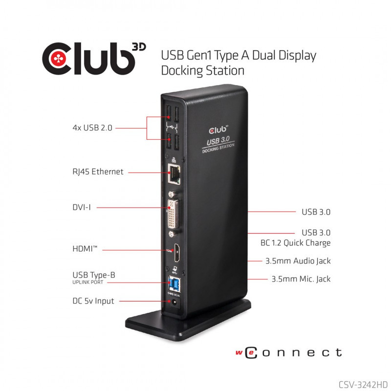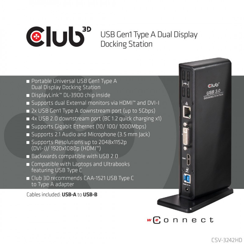 CLUB3D SenseVision USB3.0 Dual Display Docking Station