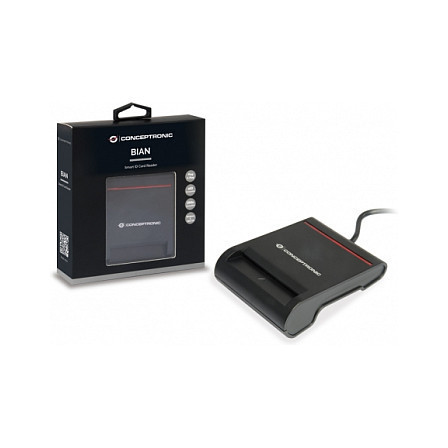"Conceptronic Smart ID Card Reader. Interface: USB 2.0. Product colour: Black. Weight: 63 g"\n"This card reader is your best friend for your online tax reporting, online banking and online identification. The card reader is fully compatible with Windows XP/Vista/7/8/10 and Mac OS and the necessary applications, e.g. DNIe and eID."
