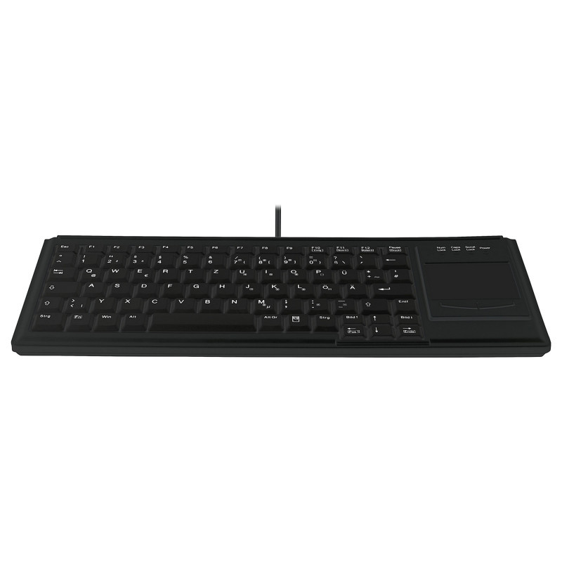 "Contour Design Active Key Contour Industrial Keyboard IP68 Touchpad Mini Wireless Black DE 4400. Keyboard style: Straight. Connectivity technology: Wired, Device interface: USB, Keyboard layout: QWERTZ, Keyboard number of keys: 83. Product colour: Black"\n"The AK-4400-GU Keyboard Series is a high quality, high reliable Small Footprint Notebook Style Keyboard with an integrated Touchpad. The integrated Touchpad does not require any maintenance nor does it have mechanical parts with limited life cycles. New Scissors Balancing Key Technology provides excellent key actuation feeling with soft tactile ergonomic characteristic. Scissors Balancing Technology improves off center key actuation characteristics. Low profile (20 mm) for rack implementation, kiosk applications and all other space critical applications. Compatible to many existing cutouts for similar keyboards with trackball.