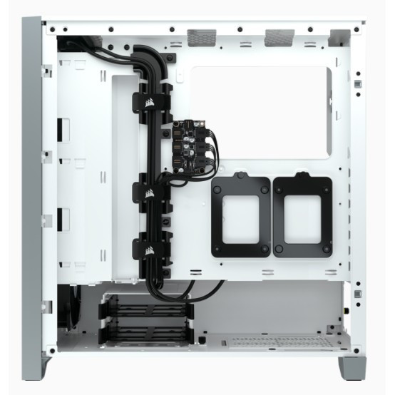"Corsair iCUE 4000X RGB. Form factor: Midi Tower, Type: PC, Product colour: White. Power supply location: Bottom. Front fans installed: 3x 120 mm, Front fans diameters supported: 120,140 mm, Rear fans diameters supported: 120 mm. Supported HDD sizes: 3.5"", SSD form factor: 2.5"". Width: 230 mm, Depth: 453 mm, Height: 466 mm"\n"The CORSAIR iCUE 4000X RGB is a distinctive and customizable tempered glass mid-tower ATX case with easy cable management and exceptional cooling, with three included CORSAIR AirGuide RGB fans.