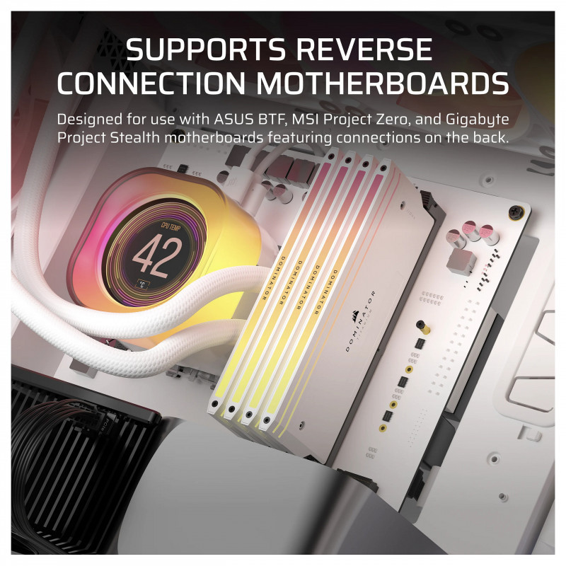Validated for use with ASUS BTF, MSI Project Zero, and Gigabyte Project Stealth motherboards featuring connections on the back of the board, so your view isn’t spoiled by cables.