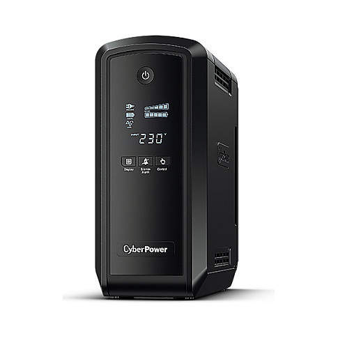 "CyberPower CP900EPFCLCD. UPS topology: Standby (Offline), Output power capacity: 0.9 kVA, Output power: 540 W. AC outlet types: Type F, Power plug: C14 coupler, AC outlets quantity: 6 AC outlet(s). Battery technology: Sealed Lead Acid (VRLA), Battery voltage: 230 V, Typical backup time at full load: 1 min. Form factor: Tower, Product colour: Black, Housing material: Plastic. Certification: CE, EAC, RCM"\n"The CyberPower Adaptive SinewaveTM Series offers users from home to SMEs clean and stable battery backup while the featured RJ11/RJ45 port ensures phone, fax, and modem lines are protected from surges. With Automatic Voltage Regulation (AVR) stabilizes the AC signal and maintains a safe voltage, this allows the UPS to maintain safe power levels for the connected equipment without resorting to battery power. The multifunction LCD readout provides immediate access to precise information of critical power/battery condition. The included PowerPanel® Personal Edition management software showcases the featured rich abilities such as input/output power voltage readings, self-diagnostics, scheduled-shutdown, and approximate battery backup time. With the Energy-Saving Technology, the Adaptive SinewaveTM Series can save up to 75% of electricity therefore save your electricity expenses."
