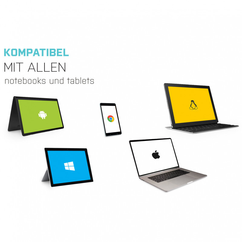 Printer? Keyboard? Mouse? External hard drive or flash drive? Charging cable for your phone? You can connect all your devices to the docking station quickly and easily. In addition, you can connect to the Internet thanks a LAN port, eliminating any worries with variable speed and quality of Wi-Fi networks.