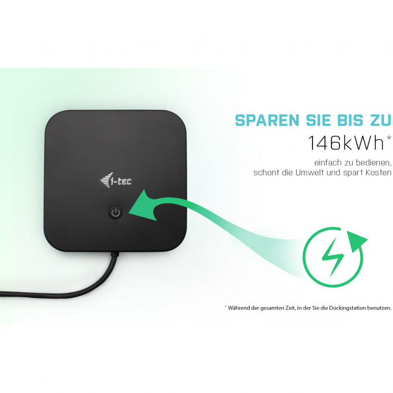 "i-tec USB-C HDMI DP Docking Station with Power Delivery 100 W. Connectivity technology: Wired, Host interface: USB 3.2 Gen 1 (3.1 Gen 1) Type-C, USB Power Delivery up to: 100 W. Ethernet LAN data rates: 10,100,1000 Mbit/s. Product colour: Black, HD type: 4K Ultra HD, Maximum digital resolution: 3840 x 2160 pixels. Other operating systems supported: Android. Width: 113 mm, Depth: 113 mm, Height: 40 mm"\n"USB-C office docking station with support for up to 2 external monitors with 4K resolution. The station is compatible with any laptop equipped with a USB-C or Thunderbolt 3 port. 6x USB ports, reliable and quick connection to your business network thanks to an integrated LAN port and support for installation behind a monitor make the docking station an ideal partner for professionals. And of course, the station is capable of charging your laptop or tablet with up to 100 W.