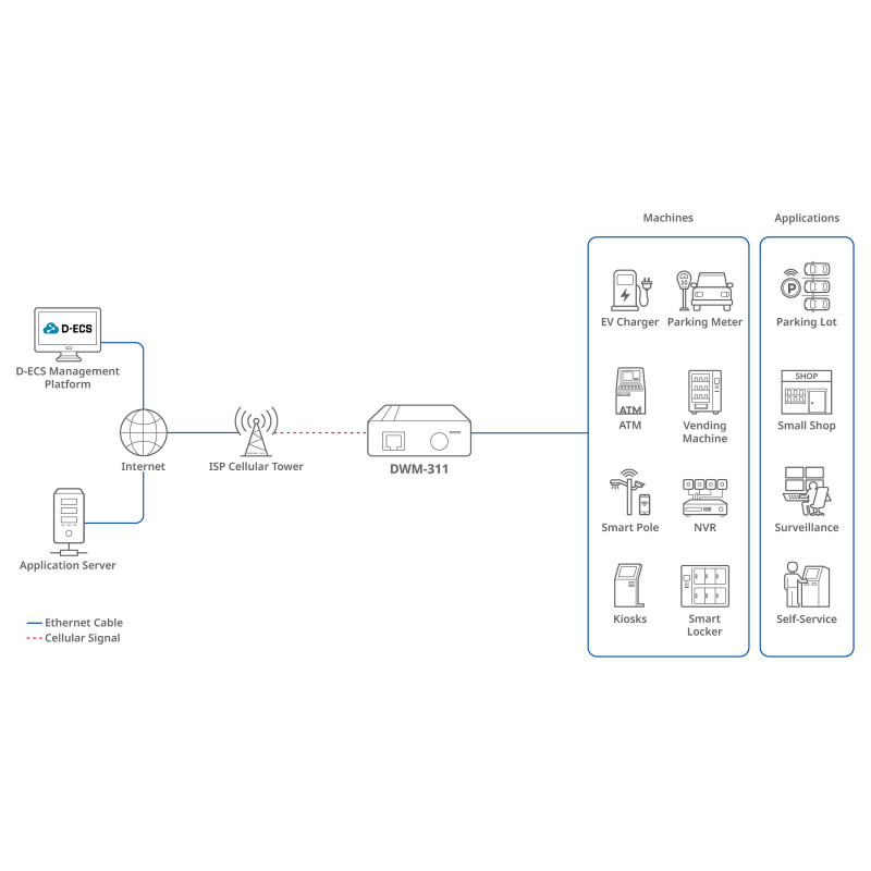 The DWM-311 is a robust 4G LTE modem fully prepared to go out in the field. Blazing fast speeds guarantee Machine to Machine (M2M) communications. It offers economical and reliable connectivity suitable for the most demanding Internet of Things (IoT) applications. This cost-effective device is here to offer complete connectivity, straight out the box.