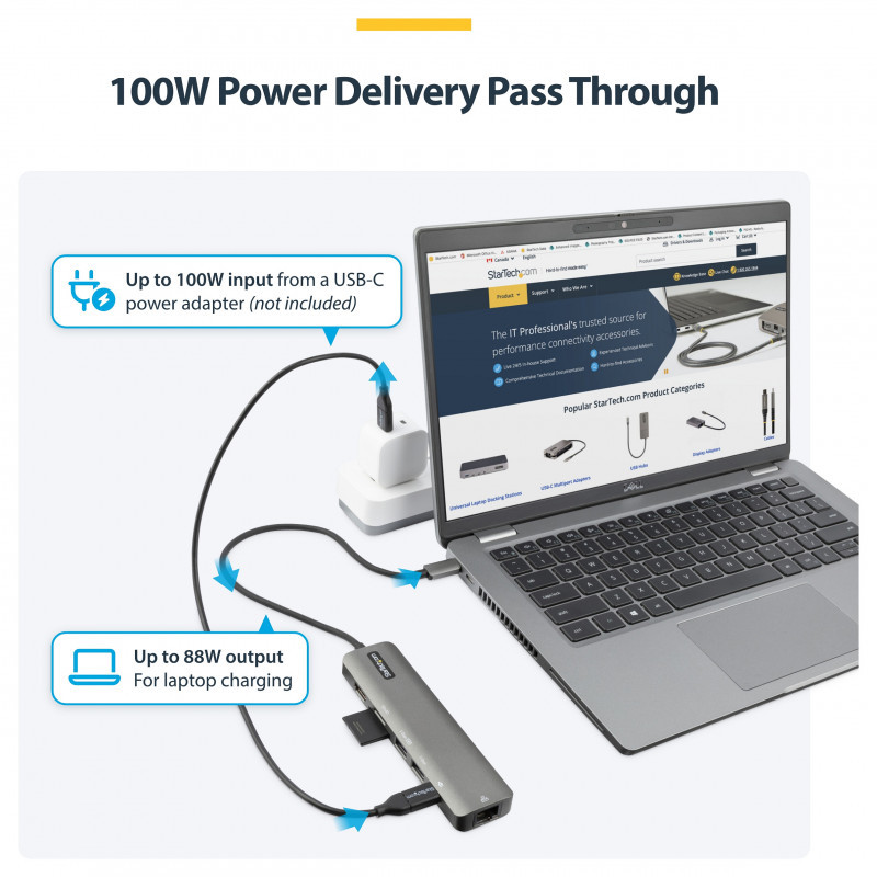 Note: To ensure full adapter functionality, your laptop's USB-C port must support USB Power Delivery."
