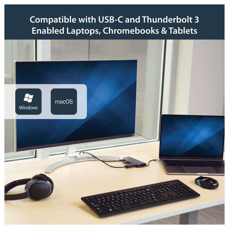 You can also use your laptop’s USB-C power adapter to power both the multiport adapter and your laptop simultaneously, with support for USB Power Delivery 2.0. It’s the ideal accessory for your MacBook Pro or other USB Type-C™ equipped laptop, and it’s also Thunderbolt™ 3 port compatible.