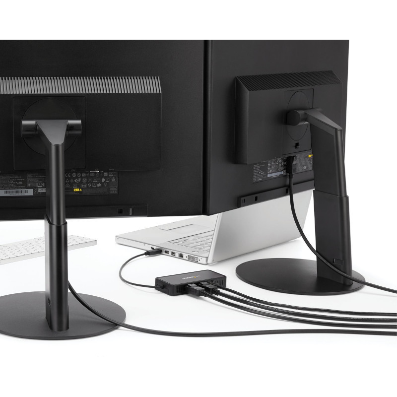 The dual DisplayPort adapter adds two DP video outputs to your USB laptop, with resolution support up to 4K. Working on two monitors increases your productivity by giving you more screen space. You can simultaneously access multiple applications and reference material on one display while composing on the other.