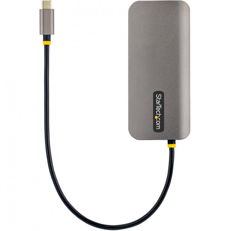"StarTech.com USB C Multiport Adapter 4K 60Hz HDMI Video, 3 Pt 5Gbps USB-A Hub, 100W USB Power Delivery Pass-Through/GbE/SD/MicroSD, 12""/30cm Cable, Travel Laptop Docking Station. Connectivity technology: Wired, Host interface: USB 3.2 Gen 1 (3.1 Gen 1) Type-C, USB Power Delivery up to: 100 W. Ethernet LAN data rates: 10,100,1000 Mbit/s, Networking standards: IEEE 802.3, IEEE 802.3ab, IEEE 802.3u. Product colour: Grey, Compatible memory cards: MicroSD (TransFlash), SD, Data transfer rate: 5 Gbit/s. Windows operating systems supported: Windows 10, Windows 10 Education, Windows 10 Education x64, Windows 10 Enterprise, Windows 10..., Mac operating systems supported: Mac OS X 10.11 El Capitan, Mac OS X 10.12 Sierra, Mac OS X 10.13 High Sierra, Mac OS X 10.14..., Mobile operating systems supported: Android, iPadOS. Width: 112 mm, Depth: 50 mm, Height: 12 mm"\n"Portable Docking Station | Mac & Windows® | 4K 60Hz | GbE | Thunderbolt™ 3 & 4 Compatible