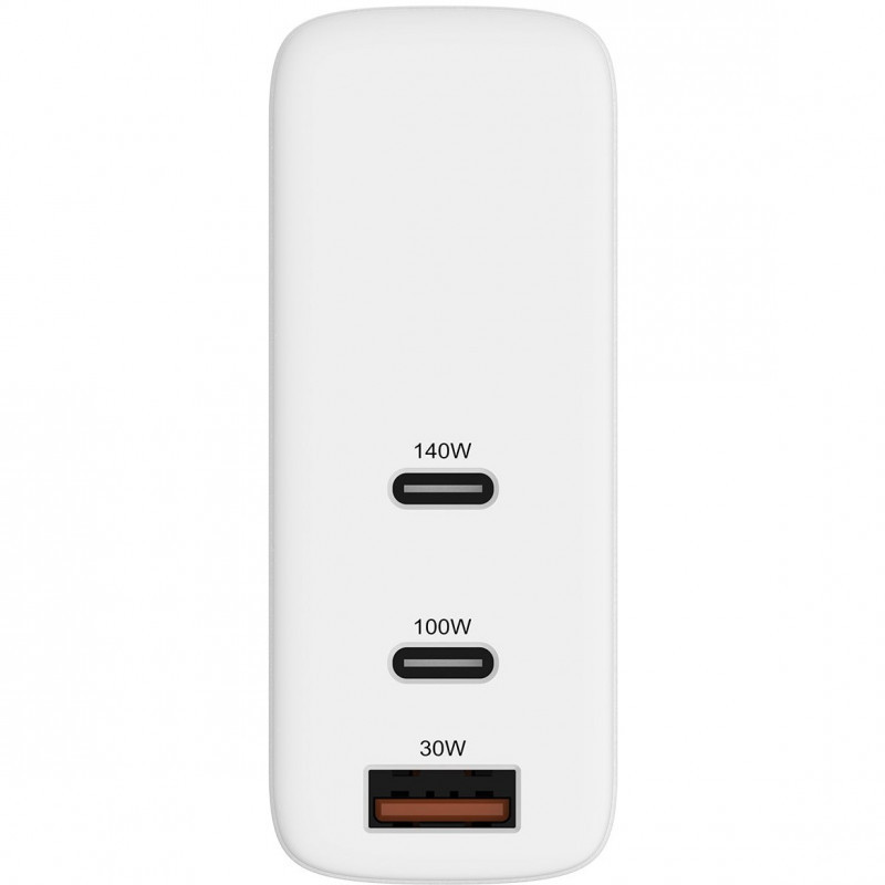 Thoughtfully designed to be incredibly portable, this charger is virtually the same size as a deck of cards, or 24% smaller than the Apple 140W Charger, and the foldable plugs make it even easier to store in a backpack.