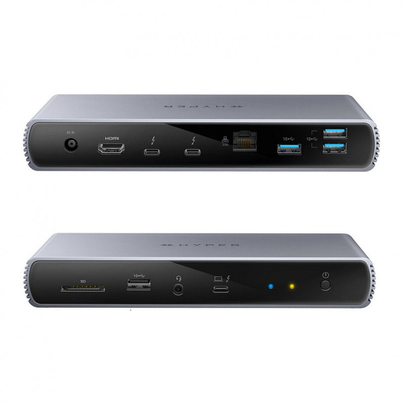 "Targus HDTB4D-EUZ. Host interface: Thunderbolt 4, USB Power Delivery up to: 96 W. Ethernet LAN data rates: 10,100,1000 Mbit/s. Product colour: Grey, Compatible memory cards: SD, Hub interfaces: 3.5mm, HDMI, RJ-45, Thunderbolt 4, USB 3.2 Gen 2 (3.1 Gen 2) Type-A. Width: 74.8 mm, Depth: 199.5 mm, Height: 31 mm"\n"The Thunderbolt 4 Docking Station is designed for enterprise businesses, PC gamers and video editors looking for an advanced connectivity solution that delivers maximum bandwidth and epic display resolutions. It features 2x Thunderbolt 4 Downstream ports capable of 40Gbps data transfers and 32Gbps PCIe transfers, and 1x Thunderbolt 4 Upstream port that provides 96W Power Delivery charging for your host device. Additionally, enjoy gaming and video editing like never before with dual 4K 60Hz display support through HDMI or Thunderbolt, an ultra-fast 2.5. Gigabit Ethernet connection, and high-resolution audio with the ability to choose between lifelike 8K 30Hz resolution or 4K 120Hz resolution to ensure faster rendering with less blur.