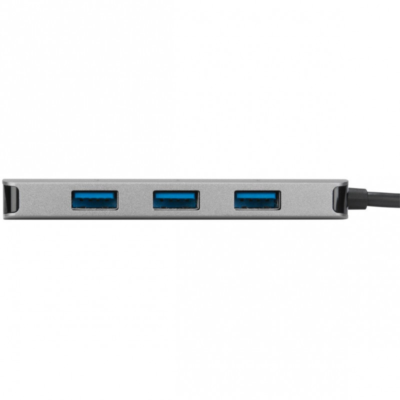 "Targus ACH226EU. Host interface: USB 3.2 Gen 1 (3.1 Gen 1) Type-C, Hub interfaces: USB 3.2 Gen 1 (3.1 Gen 1) Type-A. Data transfer rate: 5000 Mbit/s, Product colour: Silver, Country of origin: China. Power supply type: USB, Output voltage: 5 V, Output current: 0.9 A. Width: 45 mm, Depth: 94 mm, Height: 11 mm. Quantity per pack: 1 pc(s)"\n"Designed as the must-have companion to support laptops with consolidated ports to turn one USB-C port into four USB-A 3.0 ports with the Targus USB-C to 4-Port USB-A Hub. Connect your USB-A peripherals – like mice, keyboards, flash drives and hard drives - by plugging in up to four devices in the USB-A ports and connecting the tethered USB cable into your computer's USB-C port. This hub provides transfer speeds up to 5Gbps. Compact and lightweight, it’s easy to take it along with you anywhere you go.