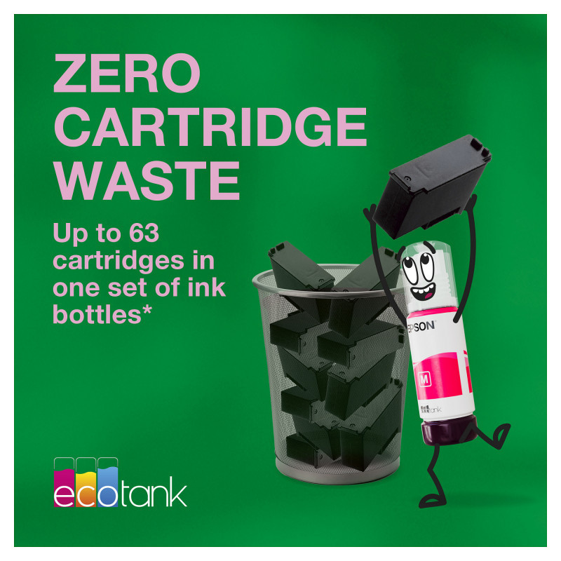 EcoTank can slash ink costs by 90% on average* thanks to its innovative design. It features large ink tanks that completely remove the need for cartridges.