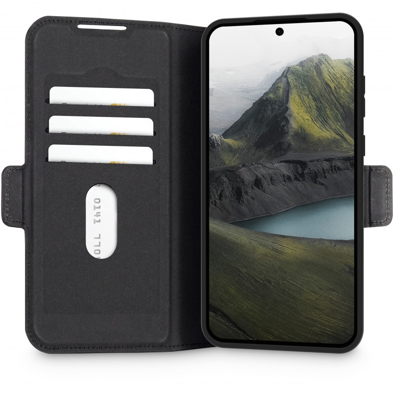 "dbramante1928 Bergen Pro. Case type: Folio, Brand compatibility: Samsung, Compatibility: Galaxy S25+, Maximum screen size: 17 cm (6.7""), Surface coloration: Monochromatic, Product colour: Black, Number of card pockets: 3"\n"Bergen Pro is an impact protective folio wallet case made from recycled plastic that looks and feels just like real leather. Unlike many other alternative products, this case is made with recycled plastic materials and is 100% recyclable. With its foldable back, you can enjoy hands-free horizontal video watching. "