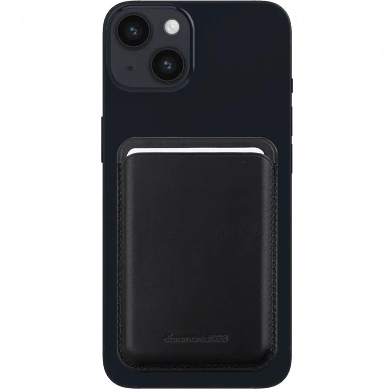 "dbramante1928 ROCCGTBL1894. Product type: Wallet, Product colour: Black, Material: Leather. Quantity per pack: 1 pc(s)"\n"Carry your wallet essentials securely without the added bulk of a folio wallet case. The slim magnetic wallet quickly snaps into place and fits snugly over your MagSafe-compatible case or phone. Handcrafted from durable full-grain leather for a durable and luxurious wallet that only gets better with age."