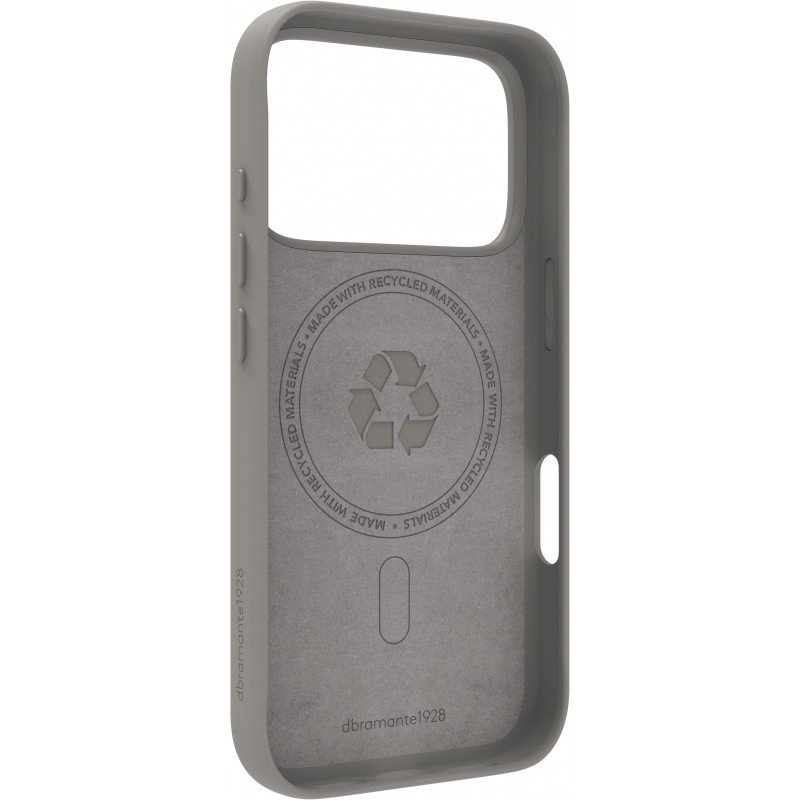 "dbramante1928 Roskilde MS Kick ICON. Case type: Cover, Brand compatibility: Apple, Compatibility: iPhone 17 Pro, Surface coloration: Monochromatic, Product colour: Grey, Desktop stand"\n"Roskilde MagSafe Kick ICON balances refined style with reliable protection and responsible materials. Made from dbramante1928’s innovative ICON material, it offers a soft-touch finish, exceptional durability, and a surface that resists scratches, stains, and pen marks. Featuring built-in MagSafe compatibility and 1.2m (4ft) drop protection, it secures your phone without sacrificing feel or design. The integrated MagSafe-compatible Kickstand not only supports seamless wireless charging but also doubles as a hands-free stand for both horizontal and vertical viewing. Crafted from GRS-certified recycled materials and fully recyclable, this case features a soft microfiber lining for added protection and a slim, minimalist profile, providing a premium in-hand experience."