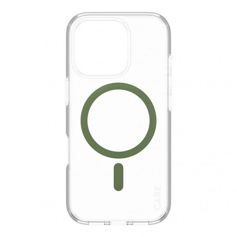 "PanzerGlass CARE™ by ® Urban Combat Case Transparent w. Green MagSafe iPhone 16 Pro. Case type: Cover, Brand compatibility: Apple, Compatibility: Apple - iPhone 16 Pro, Product colour: Transparent"\n"Our top pick. Call sign bombshell. Phenomenal protection designed for urban exploration and adventure. Every angle and corner has been drop tested at 4.8 meters. The Urban Combat case, made from recycled plastic, is designed for wireless charging and MagSafe compatibility. And it comes with our 1 Year Anti-Yellowing guarantee – no questions asked.