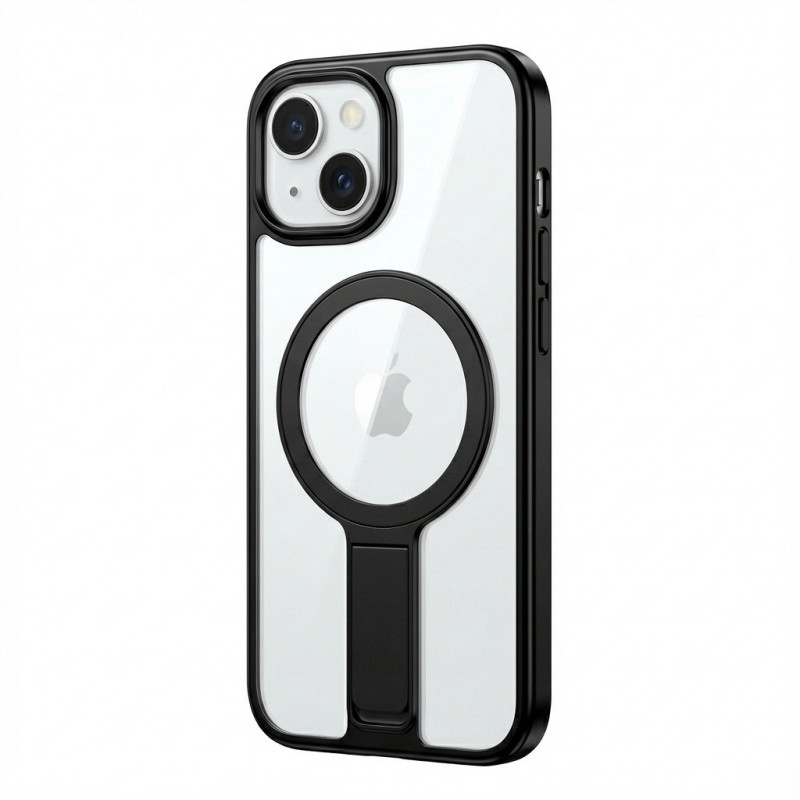 Case aus 10H Hartglas mit Kickstand für Apple iPhone 16, Transparent/Schwarz, GA-MAGCS-IP24-BLS61BLK