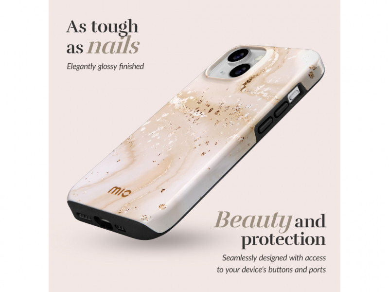 MIO Gold Marble – MagSafe suderinamas apsauginis dėklas, skirtas iPhone Pro serijos telefonams. Dėklas apsaugo įrenginį nuo įbrėžimų, smūgių ir kasdienio nusidėvėjimo, o prabangaus auksinio marmuro dizainas suteikia elegantišką akcentą. MagSafe suderinamumas užtikrina tvirtą magnetinį ryšį su MagSafe priedais – belaidžiais įkrovikliais, laikikliais ar kitais aksesuarais. Plonas ir lengvas korpusas puikiai priglunda prie telefono, išlaikydamas jo stilingą profilį.