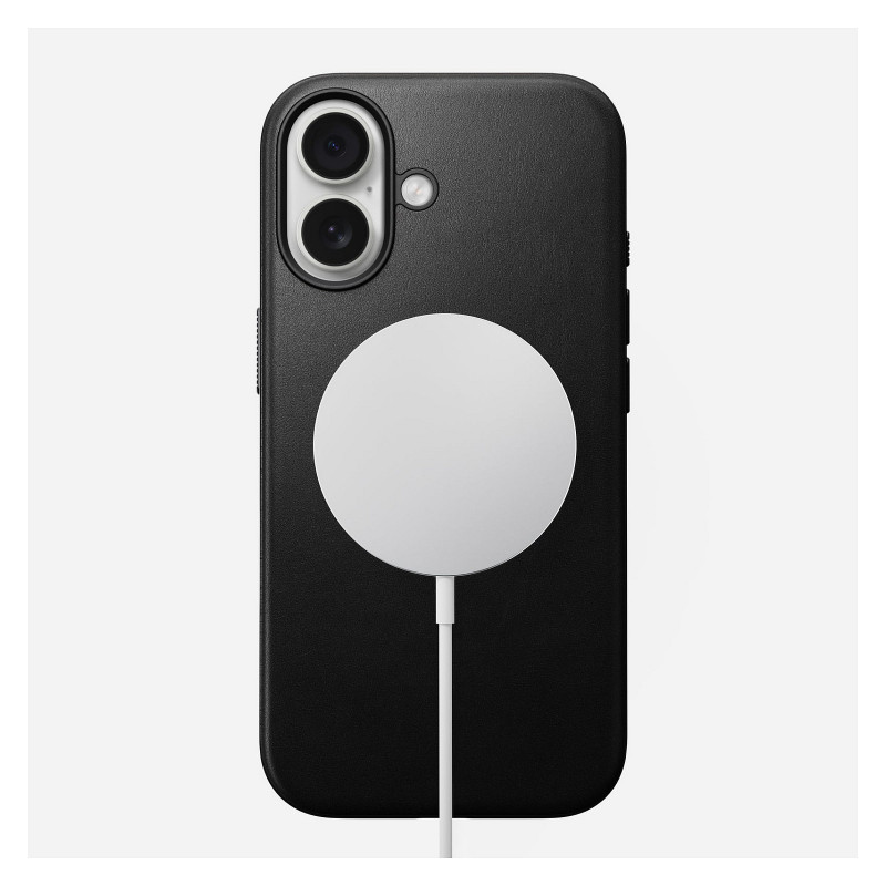 "Nomad Modern Leather Case. Case type: Cover, Brand compatibility: Apple, Compatibility: iPhone 17, Maximum screen size: 16 cm (6.3""), Surface coloration: Monochromatic, Product colour: Black"\n"Modern Leather Case gives your iPhone 17 a refined leather look while protecting it from everyday wear and tear.