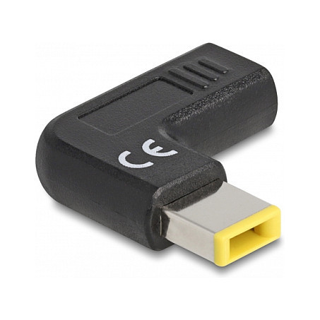 "DeLOCK Adapter for Laptop Charging Cable USB Type-C female to Lenovo 11.0 x 4.5 mm male 90° angled. Charger type: Indoor, Power source type: USB, Charger compatibility: Laptop. Input voltage: 20 V, AC adapter output current: 3 A. USB Type-C ports quantity: 1. Product colour: Black"\n"With this adapter by Delock a USB Type-C™ cable can be used to charge a laptop. The 90° angle avoids the bending of the cable and due to the small dimensions, the adapter is an ideal companion on the go.