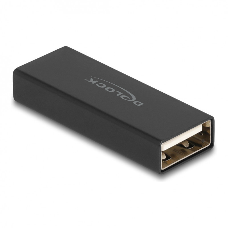 "DeLOCK Adapter Gender Changer USB 2.0 Type-A female to female metal. Connector 1: USB Type-A, Connector 2: USB Type-A. Product colour: Black"\n"This Gender Changer by Delock converts a USB Type-A male port into a female port."
