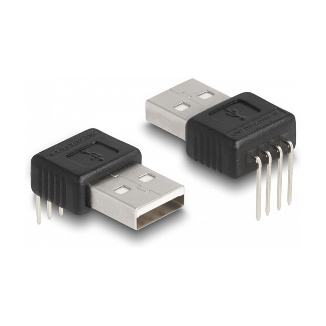 "DeLOCK Adapter USB 2.0 Type-A male to 4 pin 90° angled. Output interface: USB 2.0, Host interface gender: Male. Product colour: Black. Connector 1 gender: Male, Connector 2 gender: Male, Connector 1 form factor: Down. Output voltage: 5 V, Output current: 0.5 A. Width: 16 mm, Depth: 27 mm, Height: 8 mm"\n"This USB connector by Delock is suitable for through-hole mounting and can be used for connecting USB 2.0 Type-A devices."