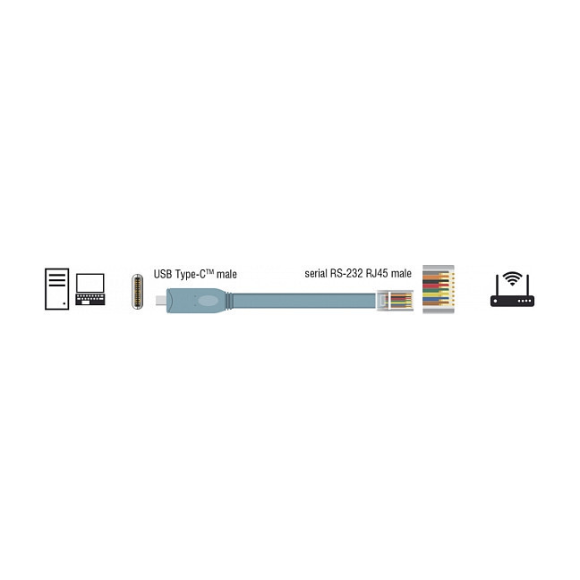 "DeLOCK 89892. Product colour: Grey, Cable length: 5 m, Connector 1: USB 2.0 Type-A"\n"This USB 2.0 to RS-232 adapter by Delock is suitable for the console control at CISCO routers, switches, access points and other compatible devices via PC or laptop."