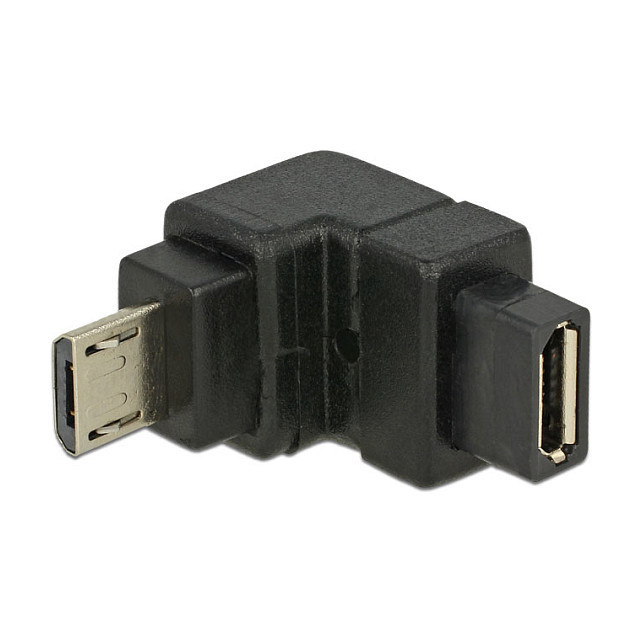 "DeLOCK USB2.0Micro-B/USB2.0Micro-B. Connector 1: USB 2.0 Micro-B, Connector 2: USB 2.0 Micro-B, Connector contacts plating: Gold. Product colour: Black"\n"This adapter by Delock can be used to angle the Micro USB interface in case the existing Micro USB port is difficult to access."
