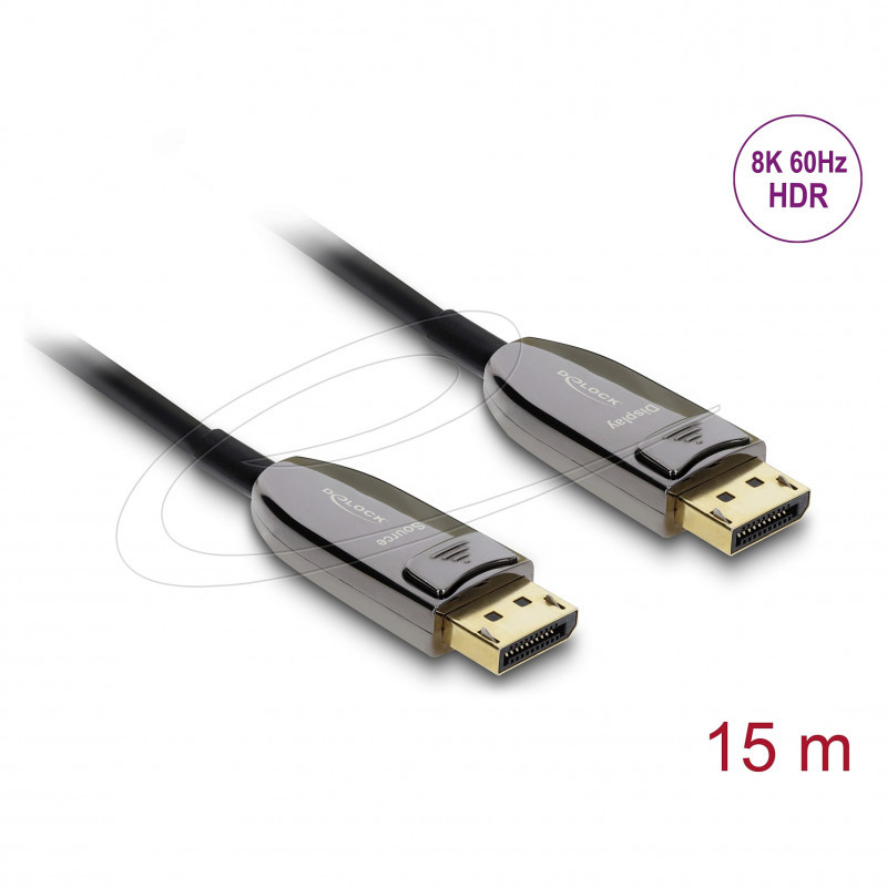 "DeLOCK 87108. Cable length: 15 m, Connector 1: DisplayPort, Connector 2: DisplayPort. Cable diameter: 5.2 mm, Bend radius (min): 2 cm. Quantity per pack: 1 pc(s)"\n"This cable by Delock is used to connect devices with a DisplayPort interface, such as monitors or TVs, to a PC or a laptop.