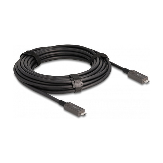 "DeLOCK Active Optical USB-C Video + Data + PD Cable 10 m. Cable length: 10 m. Connector 1: USB Type-C, Connector 2: USB Type-C, Product colour: Black"\n"This USB cable by Delock enables the connection between a device with a USB Type-C™ connector and a PC or a laptop equipped with a free USB Type-C™ port.