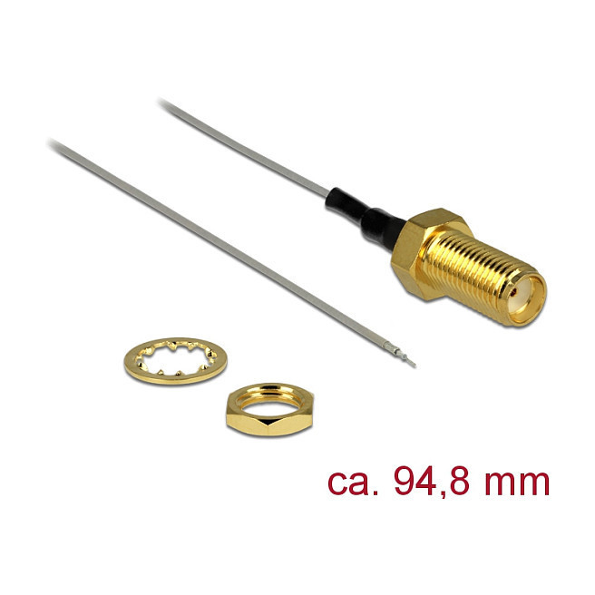 DELOCK Antennenkabel SMA Buchse zum Einbau > offenes verzinntes Kabelende (1.37-94.8mm) Gewindelnge 10mm