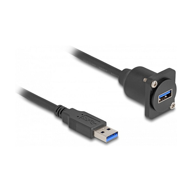 "DeLOCK D-Type USB 5 Gbps Cable Type-A male to Type-A female black 20 cm. Cable length: 20 m. Connector 1: USB A, Connector 2: USB A, Maximum data transfer rate: 5 Gbit/s, Product colour: Black"\n"This cable by Delock can be used e.g. for installation in a panel or housing with D-Type opening. It can also be used to connect various USB Type-A devices."