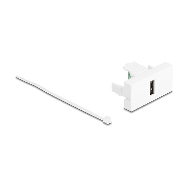 "DeLOCK 90911. Construction type: Flat, Product colour: White, Connector 1: USB A. Width: 45 mm, Depth: 22.5 mm, Height: 36 mm. Package type: Polybag. Quantity per pack: 1 pc(s). Country of origin: China"\n"This Easy 45 module by Delock is designed to provide an USB port with terminalblock 5 pin connection and can be attached to the Delock Easy 45 module system. The simple snap-in mechanism ensures that the module is firmly in place and can be easily removed if necessary.