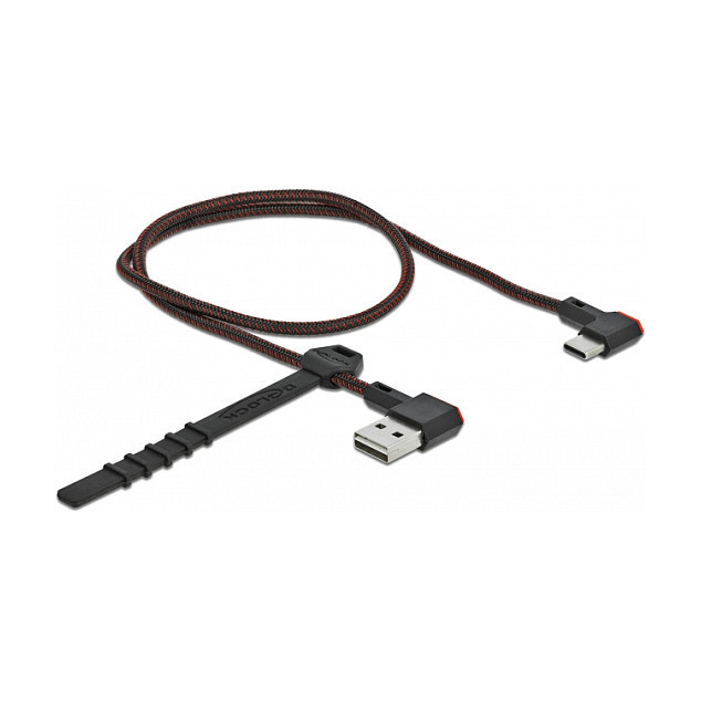 "DeLOCK EASY-USB 2.0 Cable Type-A male to USB Type-C™ male angled left / right 0,5 m black. Cable length: 0.5 m. Connector 1: USB A, Connector 2: USB C, USB version: USB 2.0, Product colour: Black"\n"This cable by Delock with EASY-USB Type-A male and USB-C™ male can be plugged into the appropriated USB female port in both directions. Thus the male connector can be used both-sided which makes the plug in easier."