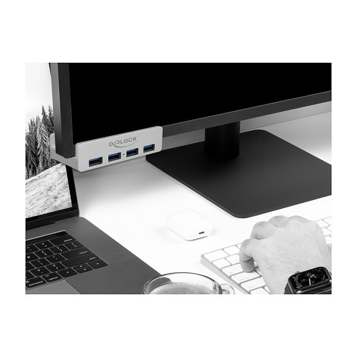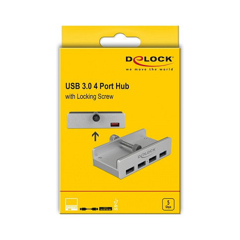 Due to the included USB cable and the locking screw, this Delock hub is particularly suitable for easy mounting on a monitor or desk. This means that the hub is always at the same location. In addition, the USB devices can be plugged in with one hand, the hub does not have to be held additionally."