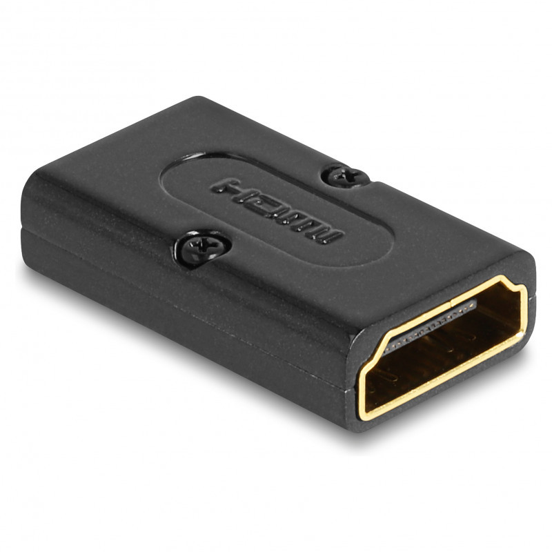 "DeLOCK HDMI Adapter female to female 8K 60 Hz metal. Connector 1: HDMI, Connector 2: HDMI, Connector contacts plating: Gold. Product colour: Black"\n"This HDMI adapter by Delock can be used to connect HDMI devices such as flat screens, etc. The adapter can also be used as a port saver to protect the interface in applications with high contact durability."