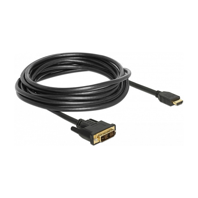 "DeLOCK 85586. Cable length: 5 m, Connector 1: DVI-D, Connector 2: HDMI Type A (Standard). Cable diameter: 7.3 mm"\n"This DVI to HDMI cable by Delock can be used to connect an HDMI monitor or a projector to the DVI interface of a PC or laptop."