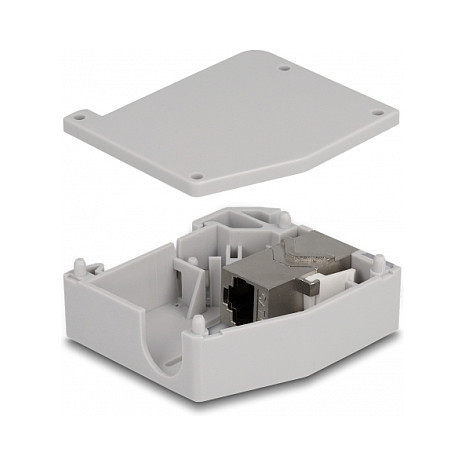 "DeLOCK DIN rail Adapter with Keystone Module RJ45 jack to RJ45 jack Cat.6A. Construction type: Flat, Product colour: Grey, Connector 1: RJ-45. Width: 60.5 mm, Depth: 56.3 mm, Height: 21.6 mm. Quantity per pack: 1 pc(s)"\n"This adapter by Delock contains a matching keystone module with an RJ45 jack that can be used to connect a network cable. At the same time, the adapter can be attached to a 35 mm wide DIN rail to enable e.g. the installation in a network cabinet. The adapter also has a small labelling field which can be individually labelled or provided with various symbols."