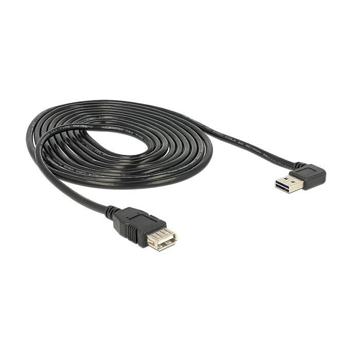 "DeLOCK 3m, USB 2.0-A - USB 2.0-A. Cable length: 3 m. Connector 1: USB A, Connector 2: USB A, USB version: USB 2.0, Connector gender: Male/Female, Maximum data transfer rate: 0.48 Gbit/s, Connector contacts plating: Gold, Product colour: Black"\n"This cable by Delock with EASY-USB male can be plugged into the USB A female port in both directions. Thus the male port can be used both-sided and make the plug in easily."