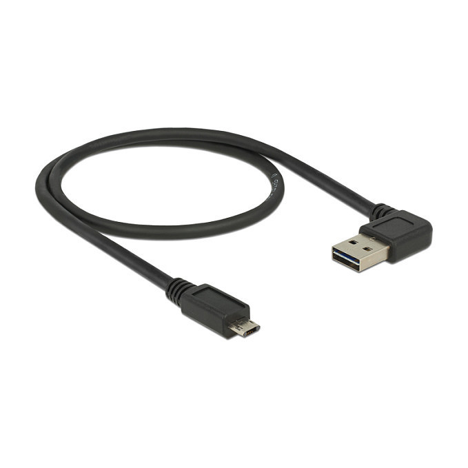 Įkroviklis | USB kabelis | Delock Kabel EASY-USB 2.0 Typ-A Stecker gewinkelt links / rechts > EASY-USB 2.0 Typ Micro-B Stecker schwarz 0,5 m
