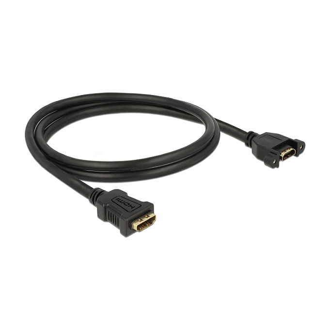 "DeLOCK 85466. Cable length: 1 m, Connector 1: HDMI Type A (Standard), Connector 1 gender: Female, Connector 2: HDMI Type A (Standard), Connector 2 gender: Female, Connector contacts plating: Gold, Maximum resolution: 3840 x 2160 pixels, Data transfer rate: 10.2 Gbit/s, Product colour: Black"\n"This cable by Delock can be used to extend an HDMI connection and to connect various devices. The female port can be attached with two screws, e.g. to a slot bracket, a cable duct or an enclosure with the corresponding opening. In this way, it is possible to install a HDMI connector in an easily accessible position."