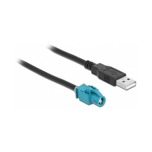 "DeLOCK Cable HSD Z female to USB 2.0 Type-A male 1 m Premium. Connector 1 gender: Male, Connector 2 gender: Female, Product colour: Black, Blue. Width: 45 mm, Depth: 500 mm, Height: 12.1 mm"\n"Description