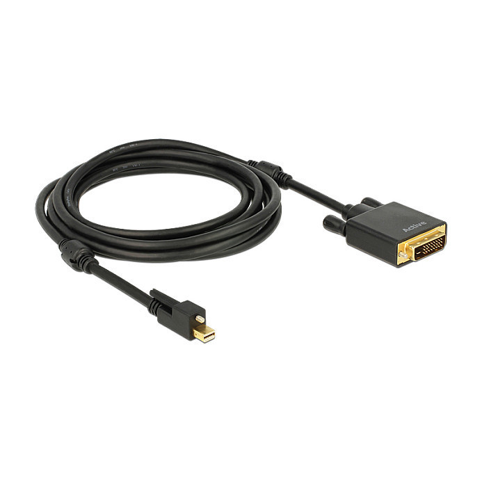 DELOCK Kabel mini Displayport 1.2 Stecker mit Schraube > DVI Stecker 4K Aktiv schwarz 3 m