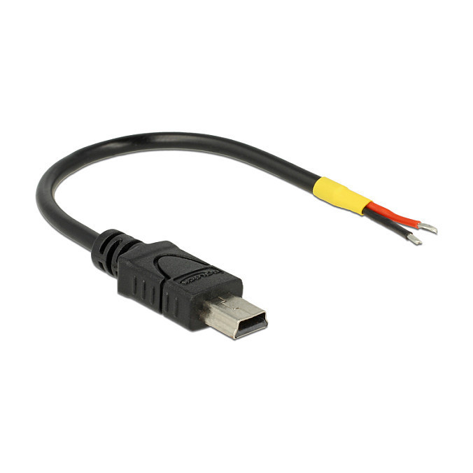 "DeLOCK 85251. Cable length: 0.1 m. Connector 1: Mini-USB B, USB version: USB 2.0, Connector gender: Male/Male, Product colour: Black"\n"This USB cable with open wires can be used to power modules or devices via an existing Mini USB port. It is particularly suitable for special industrial applications or for powering Raspberry Pi components."