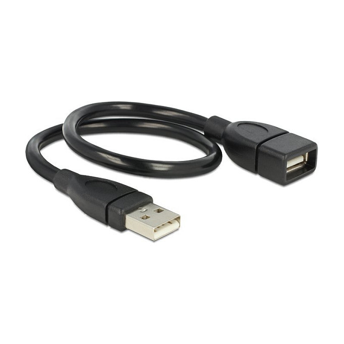 "DeLOCK 35cm USB 2.0. Cable length: 0.35 m. Connector 1: USB A, Connector 2: USB A, USB version: USB 2.0, Connector gender: Male/Female, Maximum data transfer rate: 0.48 Gbit/s, Product colour: Black"\n"This cable enables you to extend your USB 2.0 connection by ca. 35 cm and can be used to connect various devices. Because of a built-in wire the ShapeCable can be bent into any form and then maintains its shape.