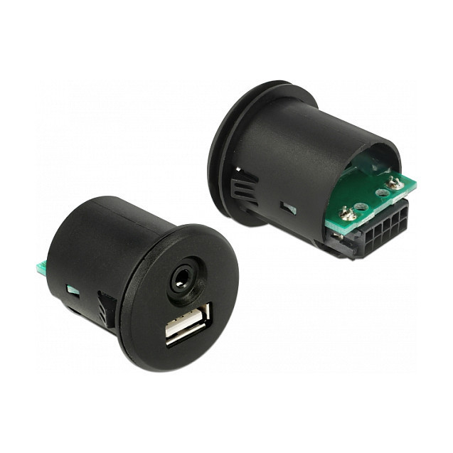 Delock Kabel USB Typ-A Stecker + 3,5 mm 4 Pin Klinkenstecker > Einbaubuchse USB Typ-A Buchse + 3,5 mm 4 Pin Klinkenbuchse (Audio) 1,5 m schwarz